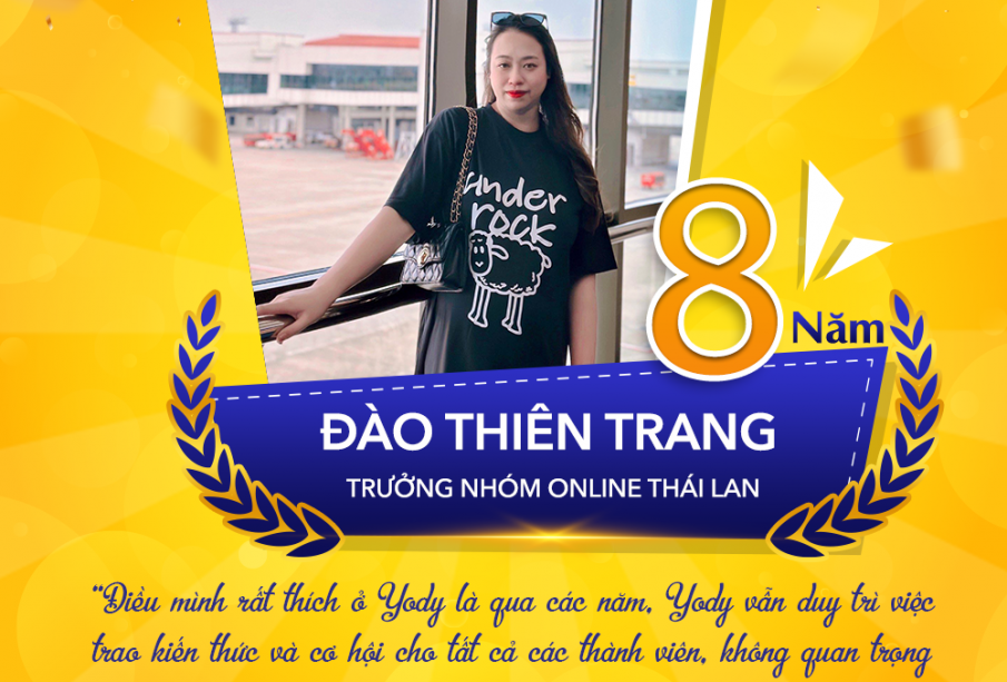 💬 “YODY xin chào. Mình là Trang, hiện đang làm việc tại vị trí Trưởng nhóm Online Thái Lan. Năm 2015, sau khi ra trường vài tháng, mình quyết tâm đi tìm một công việc để làm. Mình vào các hội nhóm việc làm Hải Dương trên facebook để tìm việc thì thấy thông tin đăng tuyển của YODY với vị trí Chuyên viên Chăm sóc khách hàng. Khi đi phỏng vấn, trong phòng có đến 9 bạn ứng viên phỏng vấn cùng và mình may mắn là 1 trong 3 người được chọn đi thử việc. Mình gắn bó với YODY từ đó tới giờ cũng ngót nghét gần 8 năm thanh xuân rồi.