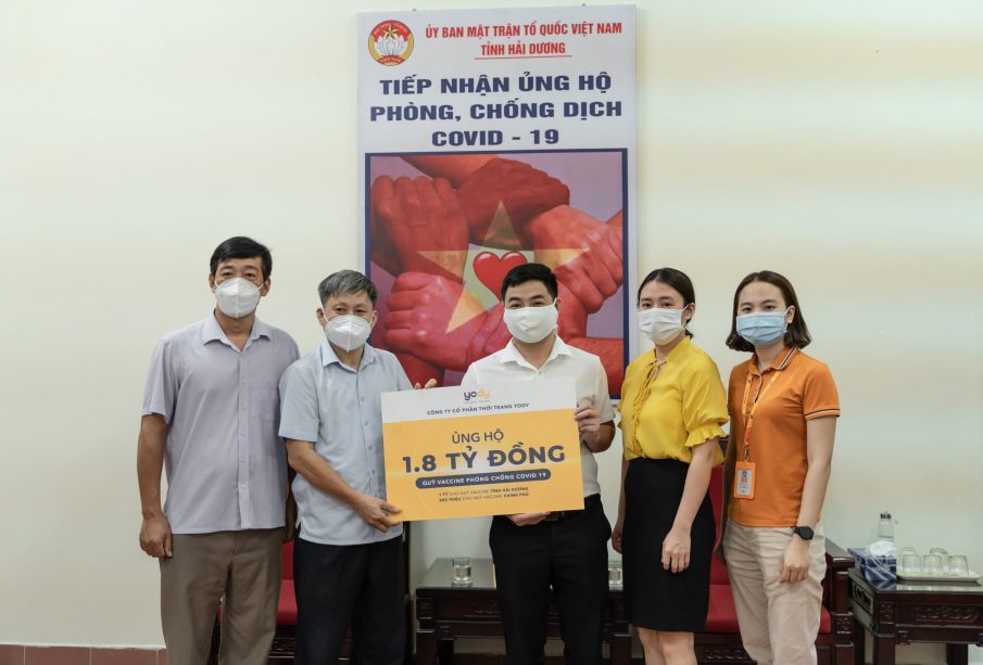 Ngày 06/07/2021, YODY đã trao 1.8 tỷ đồng cho Ủy Ban Mặt Trận Tổ Quốc tỉnh Hải Dương, góp phần làm điều ý nghĩa – chung tay cùng Chính phủ phòng chống dịch bệnh Covid-19.